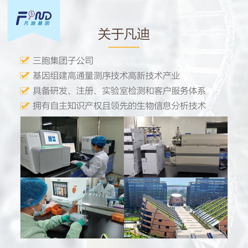 凡迪基因是一家以高通量測序技術臨床應用為核心的高新技術企業,是國內基因測序臨床轉化應用領域的知名企業。具備完善的研發、注冊、實驗室檢測和客戶服務體系,擁有各類國際先進的高通量基因測序平臺、質譜檢測平臺和高性能計算平臺,并擁有自主知識產權且領先的生物信息分析技術,實驗室總面積達8000平方米。