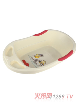 嬰兒浴盆有很好的保溫性,其本身采用的材料能有效的減少熱量流失。浴盆底部有出水口,外沿部小格內(nèi)可盛放洗浴用品,