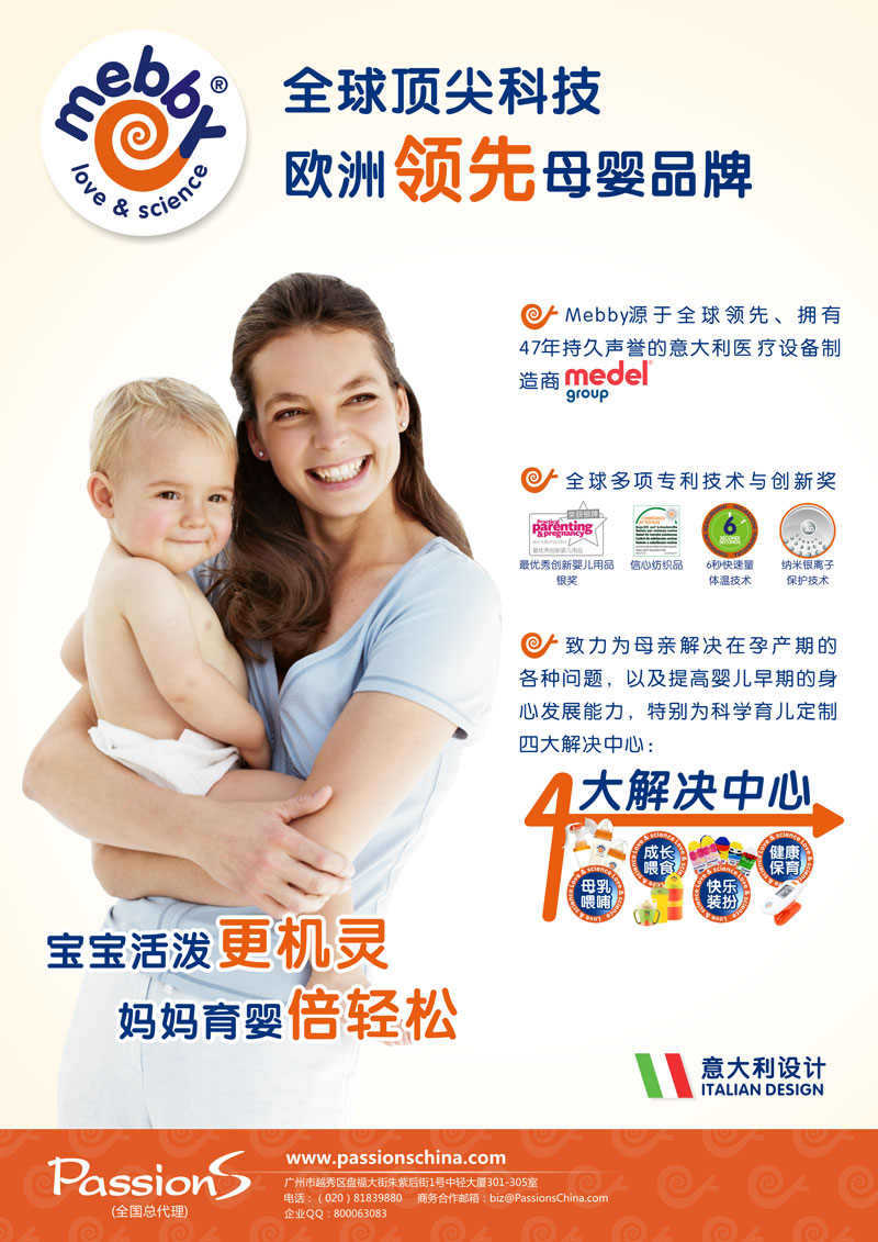 Mebby,意大利新一代嬰兒用品品牌,在歐洲市場(chǎng)與新安怡并肩,同為市場(chǎng)頂級(jí)質(zhì)量與表現(xiàn)的品牌。