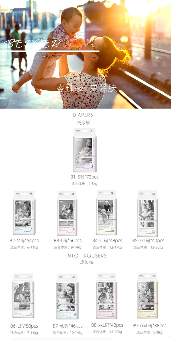 BERGER,專業嬰兒紙尿褲品牌,深耕該領域多年,極具市場口碑,產品深得終端市場認可!火爆嬰童網極力為各位寶媽推薦這款BERGER嬰兒零觸感低敏成長褲XXL42!以至臻品質熱賣終端,上市以來快速“走紅”市場,備受好評!