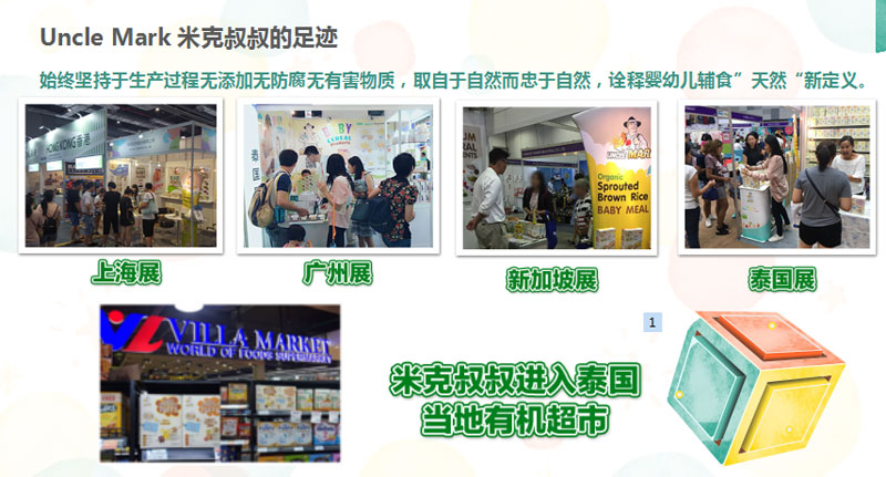 Uncle Mark米克叔叔品牌是鋐美(泰國)工業(yè)股份有限公司旗下產(chǎn)品,公司成立于1988年,是泰國政府批準(zhǔn)為BOI(投資促進委員會)全外資食品工廠,獲得多項國際認證和擁有先進技術(shù)與設(shè)備,專業(yè)生產(chǎn)嬰幼兒輔食、即食粥、即溶谷粉以及健康休閑食品。