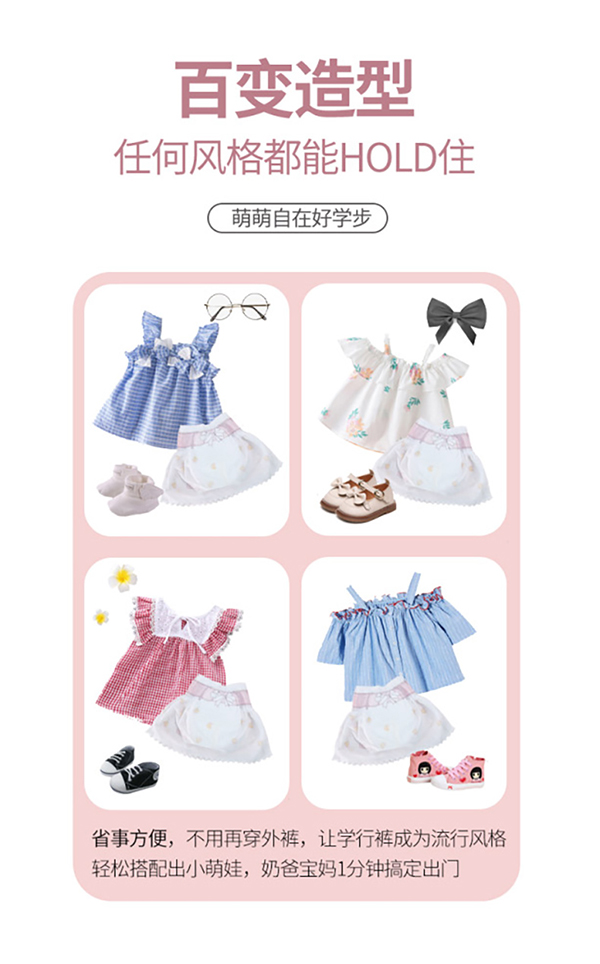 1、尿褲+外裙一體設計,省去頻繁穿脫裙子的麻煩