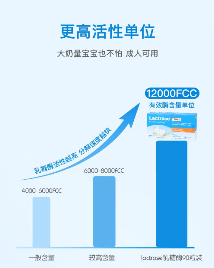 樂迪士乳糖酶,采用植物源性乳糖酶,耐胃酸能力遠遠超過動物源乳糖酶,健康更高效。12000FCC高活性,成分簡單,不含葡萄糖/乳清蛋白等成分,植物提取,高活性,耐胃酸。