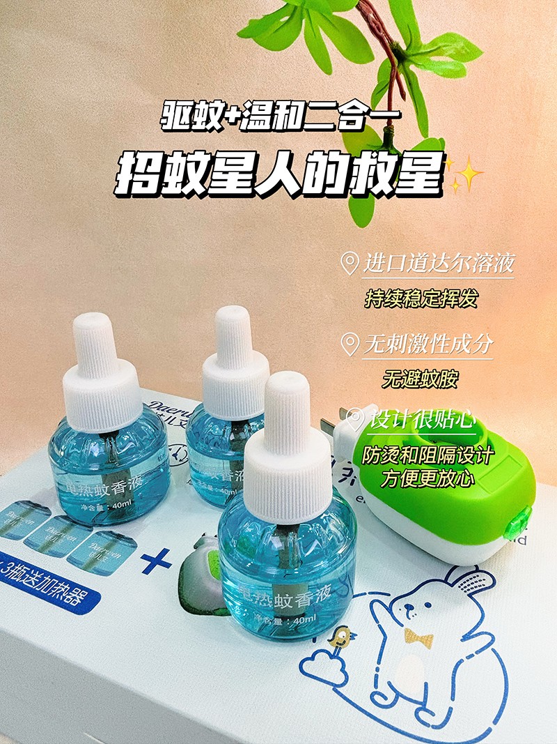 達兒文電熱蚊香液,溫和驅趕蚊蟲,無香無煙,溫和有效,安全守護,持久有效。