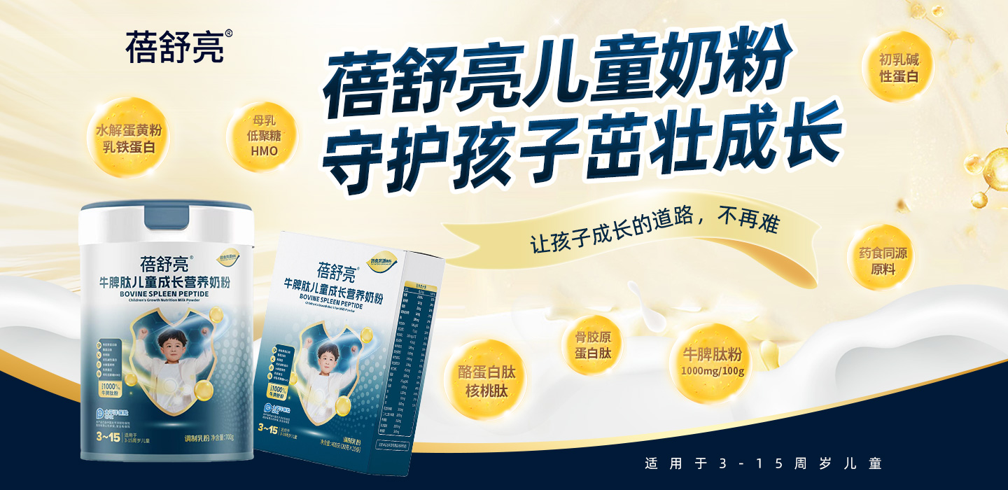 蓓舒亮牛脾肽兒童成長營養奶粉,適用于3-15周歲兒童,添加牛脾肽粉、水解蛋黃粉、初乳堿性蛋白、酪蛋白肽、核桃肽粉、N-乙酰神經氨酸、雞內金粉、菊粉、茯苓粉、山藥粉、山楂粉、蓮子粉、薏苡仁粉,藥食同源配方,科學配比,均衡營養,全面滿足成長。