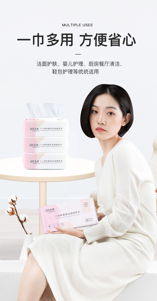 棉纖維,干濕兩用,不含熒光劑,無刺激