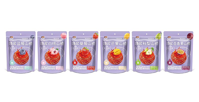 兩個寶貝爆漿山楂系列,有白桃、百香果、草莓、藍莓、芒果、秋梨,六種口味,甄選原果,鮮制而成。外面包裹著一層山楂果,內芯搭配水果,果漿注心,輕輕咬一口就會爆漿。