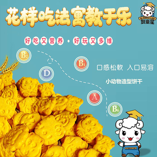 賀童星小米羊奶多維溶餅,特別精選日光小米制作,易吸收,好消化,獨有配方,入口易溶,只酥不硬哦!且富含多種維生素:維生素B1、維生素B2、維生素A、維生素D、維生素B6,健康營養更有滋味。
