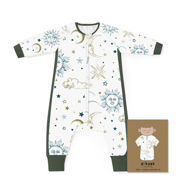 yikyak四層紗布長袖分腿睡袋(側拼款) 春啼產品展示