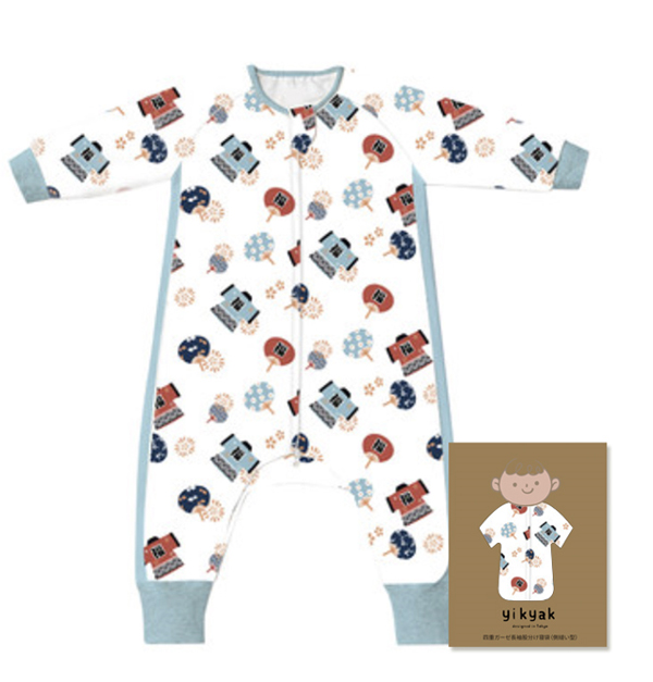 yikyak四層紗布長袖分腿睡袋(側拼款) 灰羽產品展示