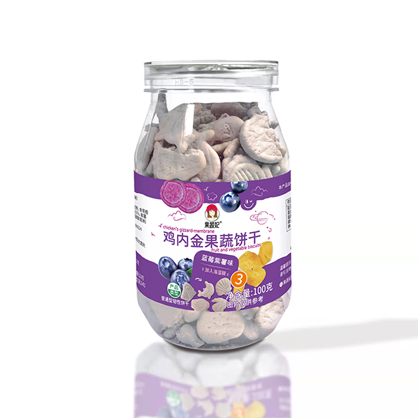 果蔬妃雞內金果蔬餅干系列,有菠蘿青瓜味、藍莓紫薯味、香蕉玉米味,共三種口味,甄選優質原料,采用先進工藝制作,加入雞內金、果蔬等食材,特別添加海藻糖,健康美味有營養。
