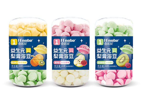 壹諾貝雙味益生元梨膏溶豆有原味+火龍果味、獼猴桃味+火龍果味、南瓜味+獼猴桃味三款單品,精選優質原材料,萃取多種水果精華,營養豐富,Q彈好吃不沾牙,雙色口味,干凈衛生,攜帶方便,隨時隨地補充纖維及維生素。