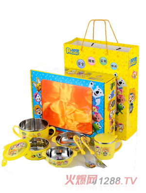 正品兒童餐具不銹鋼套裝韓國bao--bao餐具防摔保溫碗嬰兒碗筷勺叉